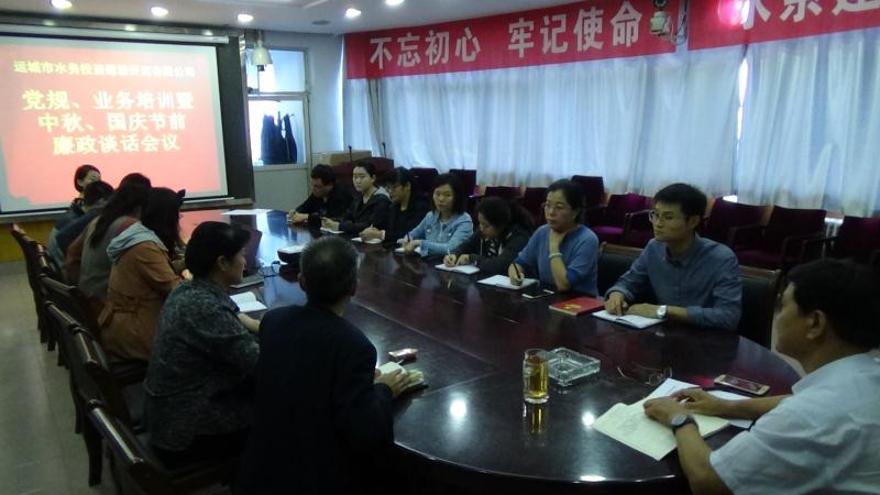 我公司組織召開黨規(guī)、業(yè)務(wù)培訓(xùn)暨中秋、國(guó)慶節(jié)前廉政談話會(huì)