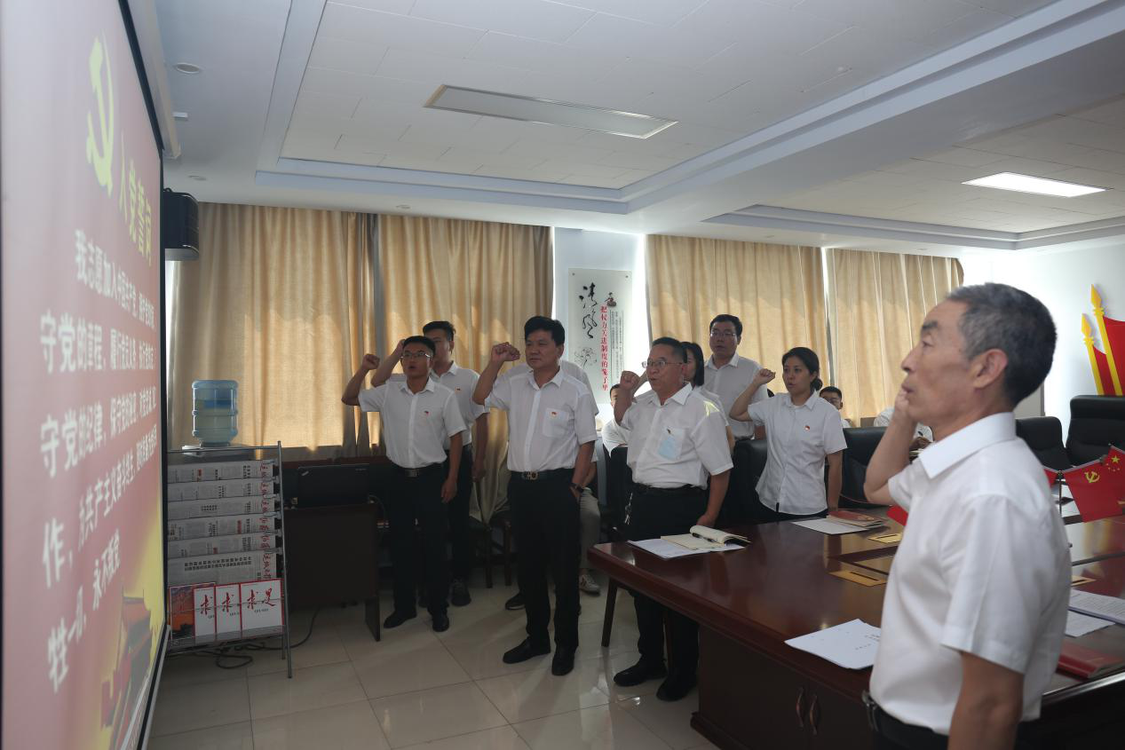 7月1日下午,全體黨員、入黨積極分子集中在四樓黨建活動室,向黨組織交納了黨費,面向黨旗,重溫了入黨誓詞。
