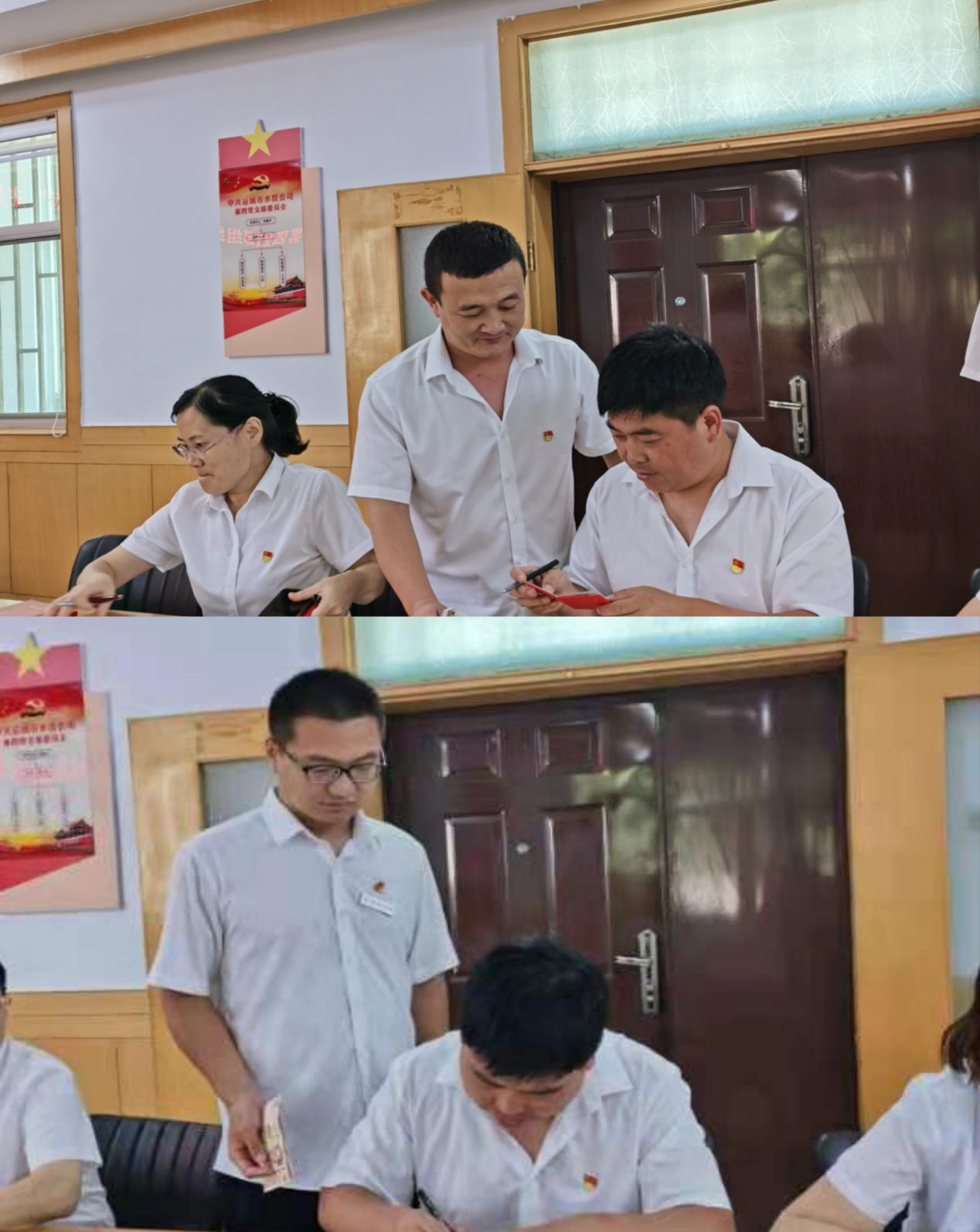 首先,全體黨員逐個向支部繳納了本月黨費,并進行了黨費收繳臺賬登記。