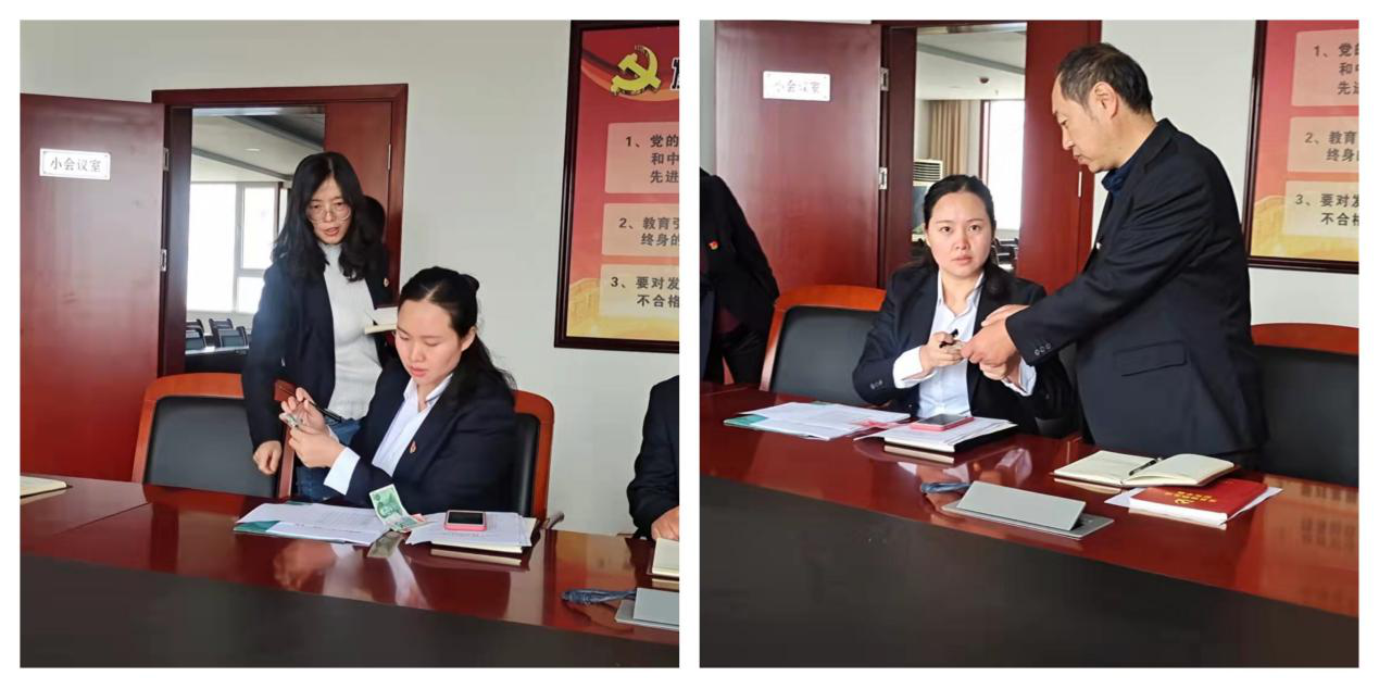 在主題黨日上,黨員集中繳納了本月黨費,并在支部黨員大會記錄本和“三晉先鋒”軟件上簽到。