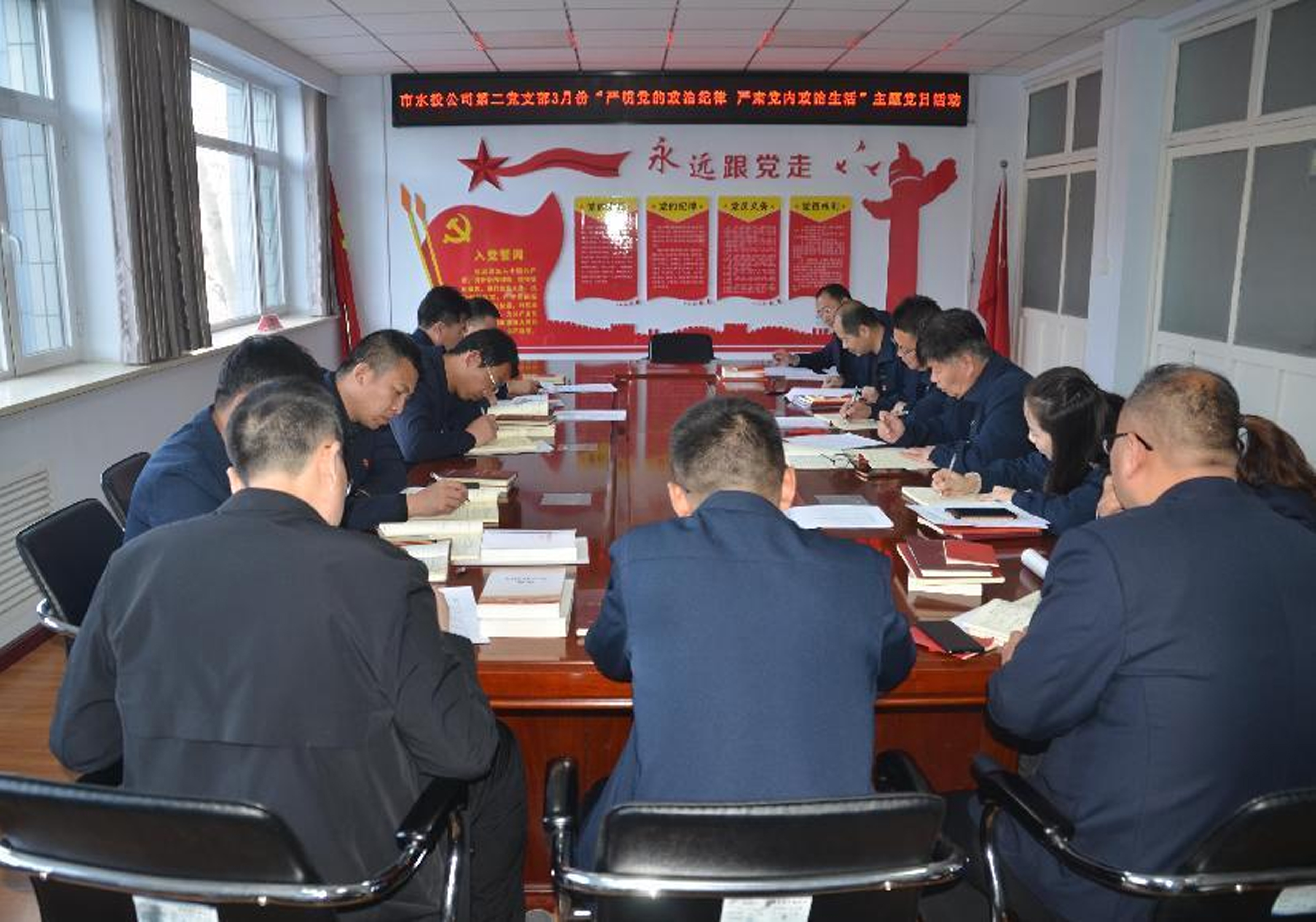 按照市水投公司黨委統(tǒng)一部署要求,第二黨支部2022年3月7日下午2:30分組織全體黨員、積極分子、群眾代表開展了“嚴明黨的政治紀律 嚴肅黨內(nèi)政治生活”主題黨日活動,會議由支部書記吳爭兵主持。