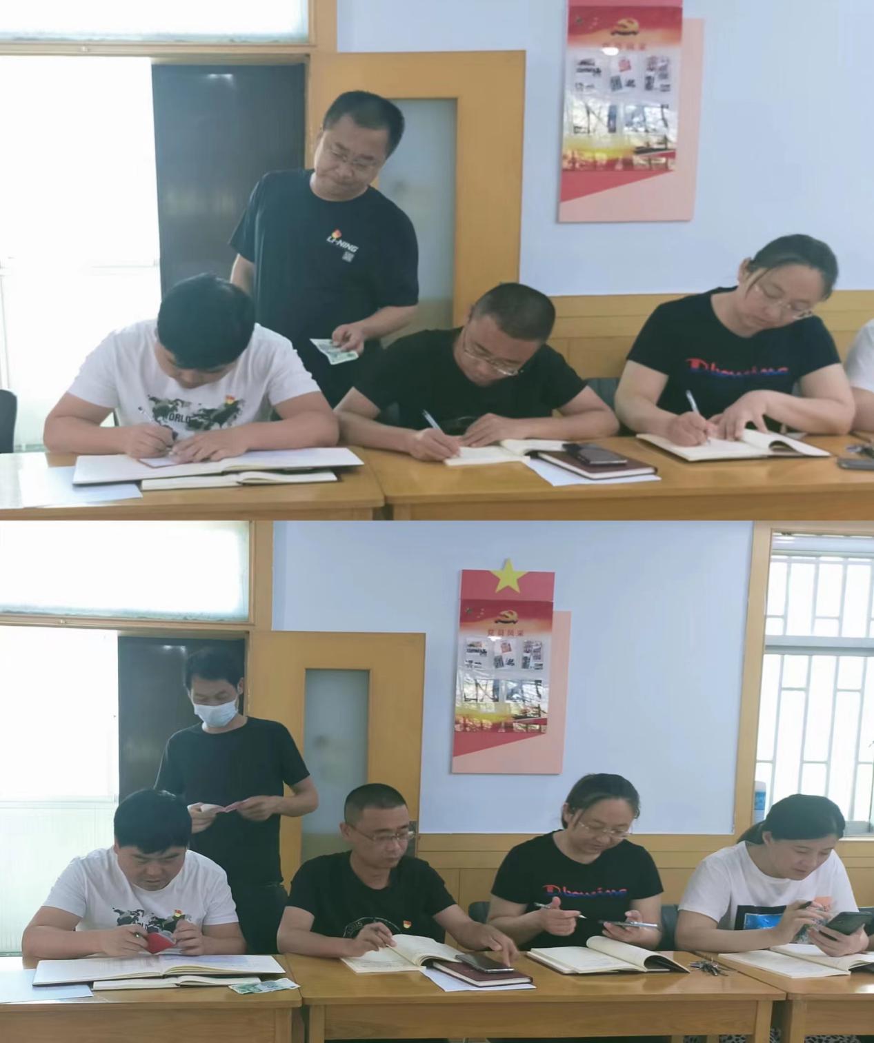 會(huì)前,全體黨員逐個(gè)向支部繳納了本月黨費(fèi),并進(jìn)行了黨費(fèi)收繳臺(tái)賬登記。