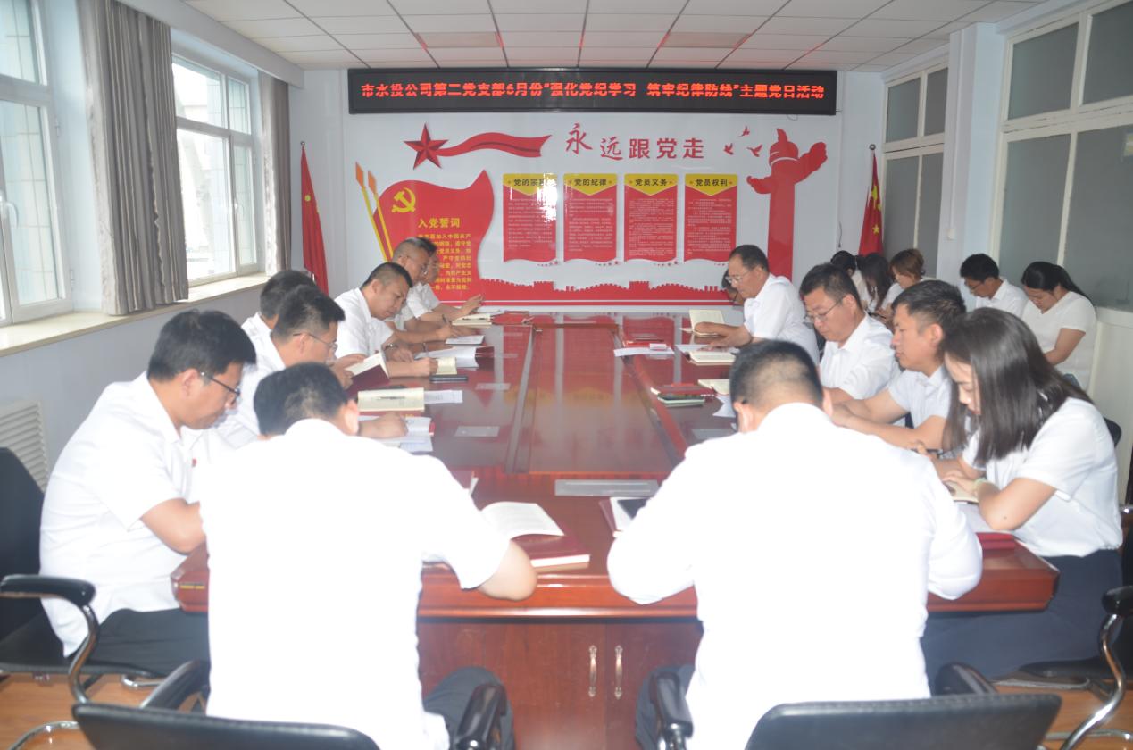 按照市水投公司黨委統(tǒng)一部署要求,第二黨支部于2024年6月3日下午開展了“強(qiáng)化黨紀(jì)學(xué)習(xí) 筑牢紀(jì)律防線”主題黨日活動(dòng),支部全體黨員、積極分子參加會(huì)議,支部書記吳爭(zhēng)兵主持會(huì)議。