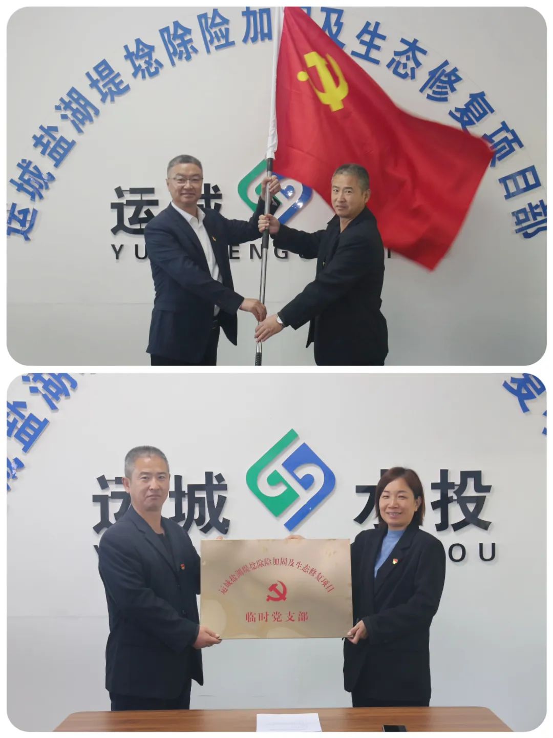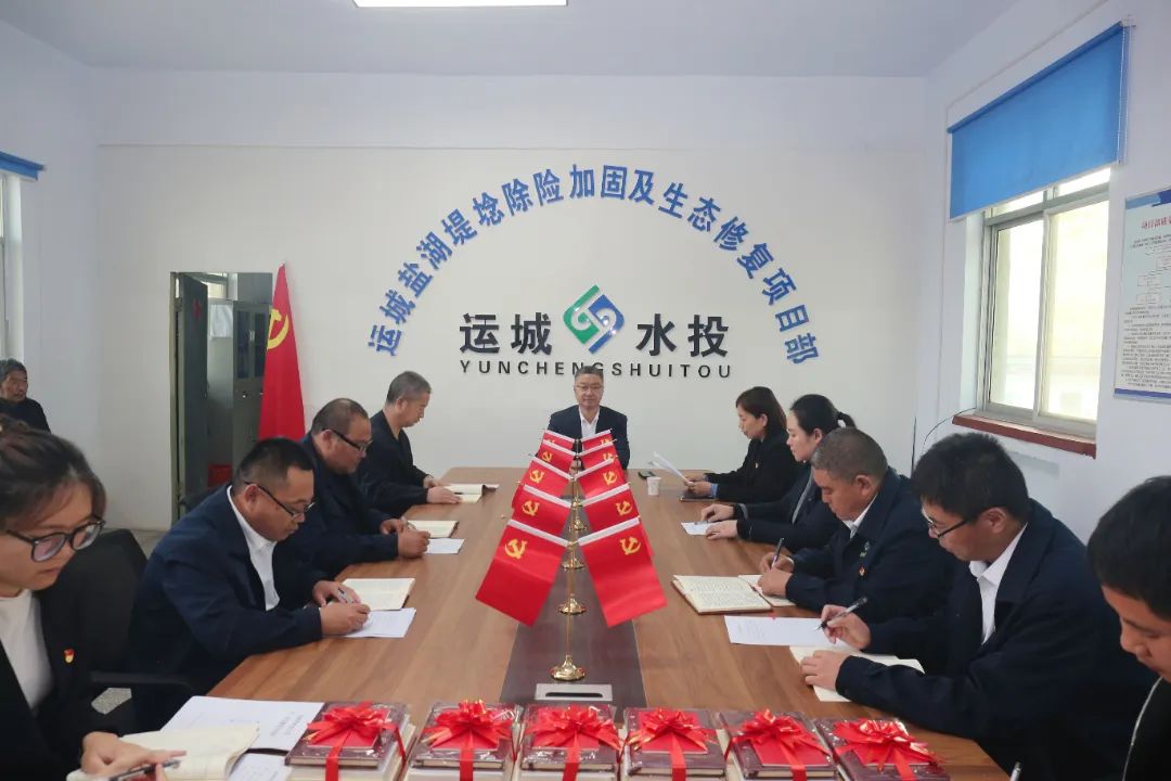 會(huì)議首先宣讀了公司黨委《關(guān)于同意成立運(yùn)城鹽湖堤埝除險(xiǎn)加固及生態(tài)修復(fù)項(xiàng)目臨時(shí)黨支部的批復(fù)》,黨委書(shū)記、副書(shū)記分別向臨時(shí)黨支部授旗、授牌,贈(zèng)送了黨章、黨徽、黨建圖書(shū)、會(huì)議記錄本、學(xué)習(xí)資料等,并對(duì)鹽湖項(xiàng)目臨時(shí)黨支部的成立表示熱烈祝賀。