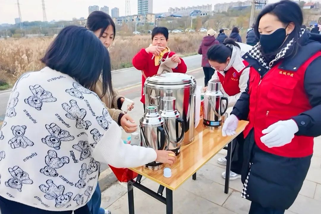 ▲市水投公司設(shè)立黨員先鋒崗,為游客提供免費(fèi)熱水服務(wù)