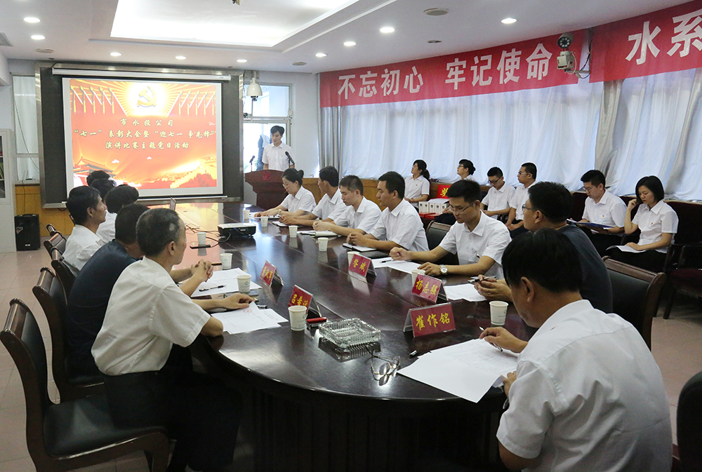 會上,全體黨員干部群眾高唱中華人民共和國國歌,全體黨員重溫了入黨誓詞。黨辦主任昝斌宣讀了公司黨委《關(guān)于表彰公司2018年度優(yōu)秀共產(chǎn)黨員和優(yōu)秀黨務工作者的決定》。主題黨日活動的內(nèi)容為“迎七一爭先鋒”演講比賽。公司4位黨員和4位入黨申請人登臺演講,通過樸實的話語、真摯的情感和動人的事跡,全面展示了水投員工愛黨愛國、忠誠擔當、無私奉獻的良好形象。演講比賽之后公司黨委書記崔作銘和市國資委黨建科兩位科長為優(yōu)秀共產(chǎn)黨員、優(yōu)秀黨務工作者和演講比賽優(yōu)勝者頒發(fā)了證書。