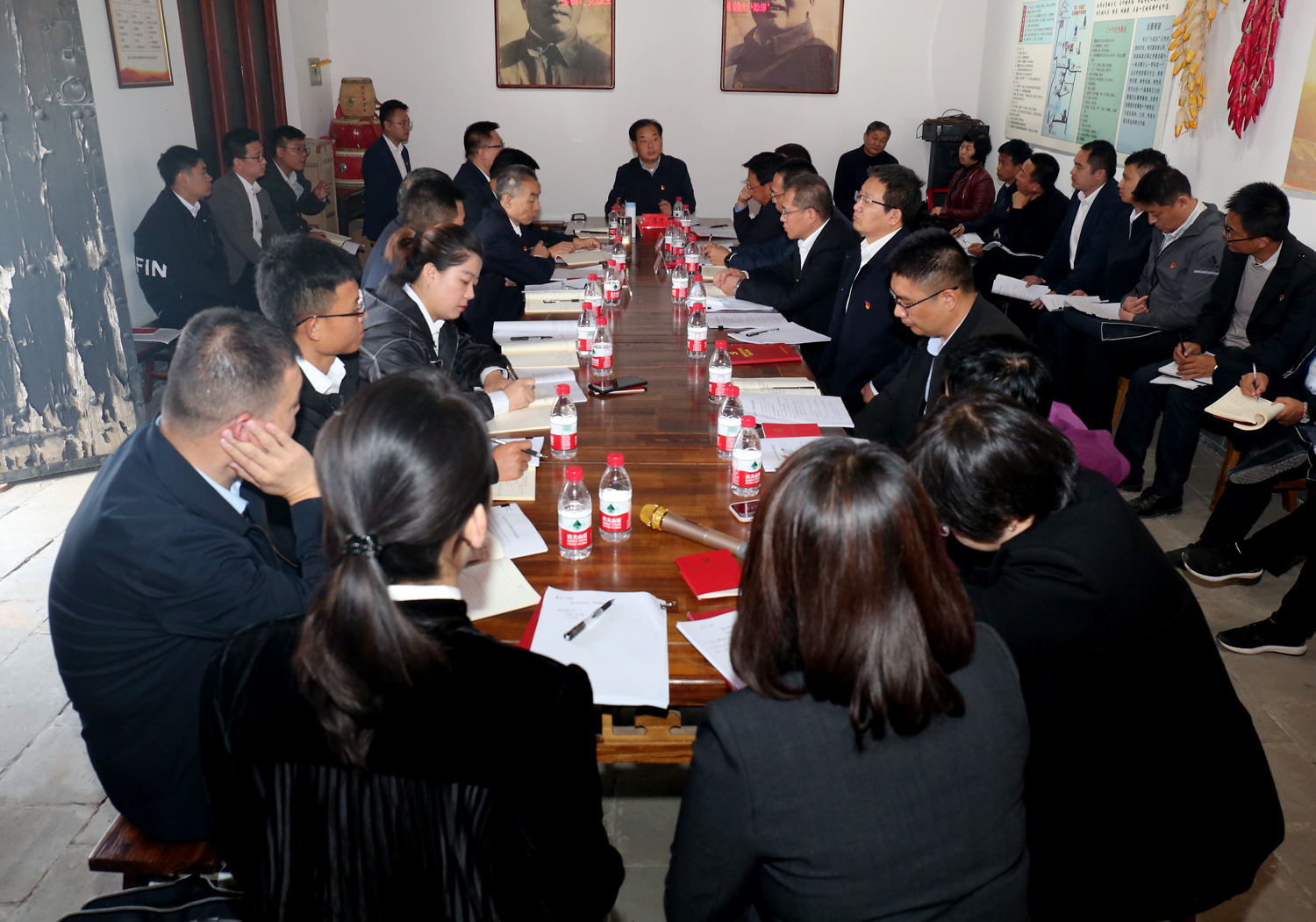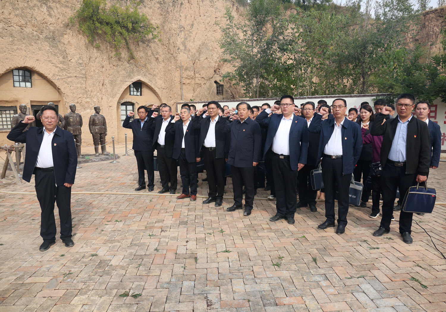 在稷麓縣抗日民主政府舊址,大家參觀了會議室、傳令班、先鋒亭等革命地點,聆聽了“大戰(zhàn)火焰山”“夜襲杜梨凹”“楊樊莊突圍”等稷麓烽火故事,深切感受到了稷麓縣政府的柴澤民、金長庚、趙宜軒、雷震龍等革命先輩攻堅克難、不怕犧牲的英雄氣概和無私奉獻、敢于勝利的革命風范,對牛莊村為革命事業(yè)所做出的犧牲奉獻有了切身的感受和由衷的感動。市委政法委常務副書記、機關黨委書記周鑫同志帶領大家重溫了入黨誓詞。