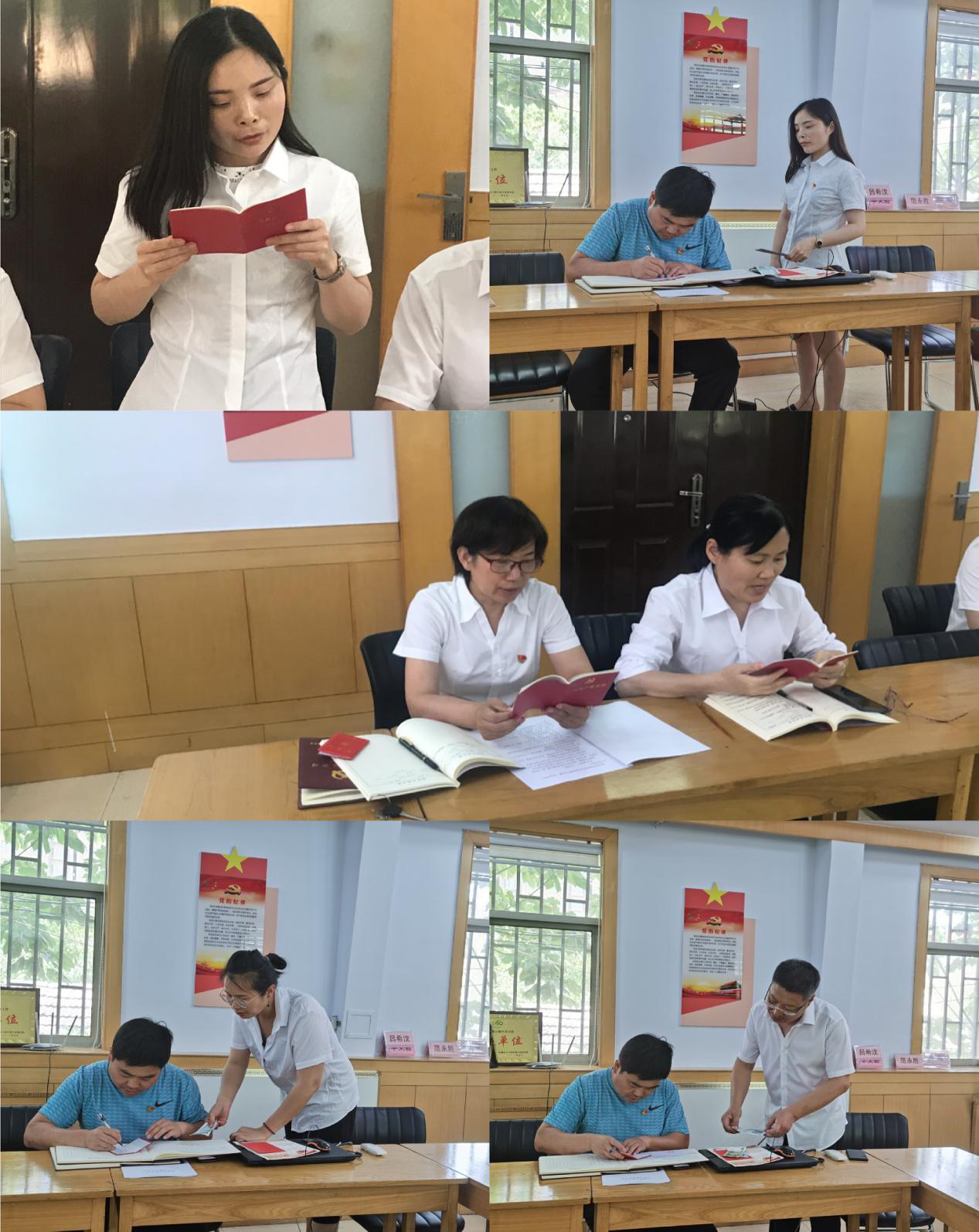 首先,全體黨員分別向支部繳納了本月黨費(fèi)并在黨費(fèi)證上進(jìn)行了登記。支部公開了5月份“學(xué)習(xí)強(qiáng)國”、“黨費(fèi)”及開展活動情況。在張婷同志的領(lǐng)誦下,全體人員齊誦了《黨章》第二章“黨的組織制度”部分內(nèi)容。
