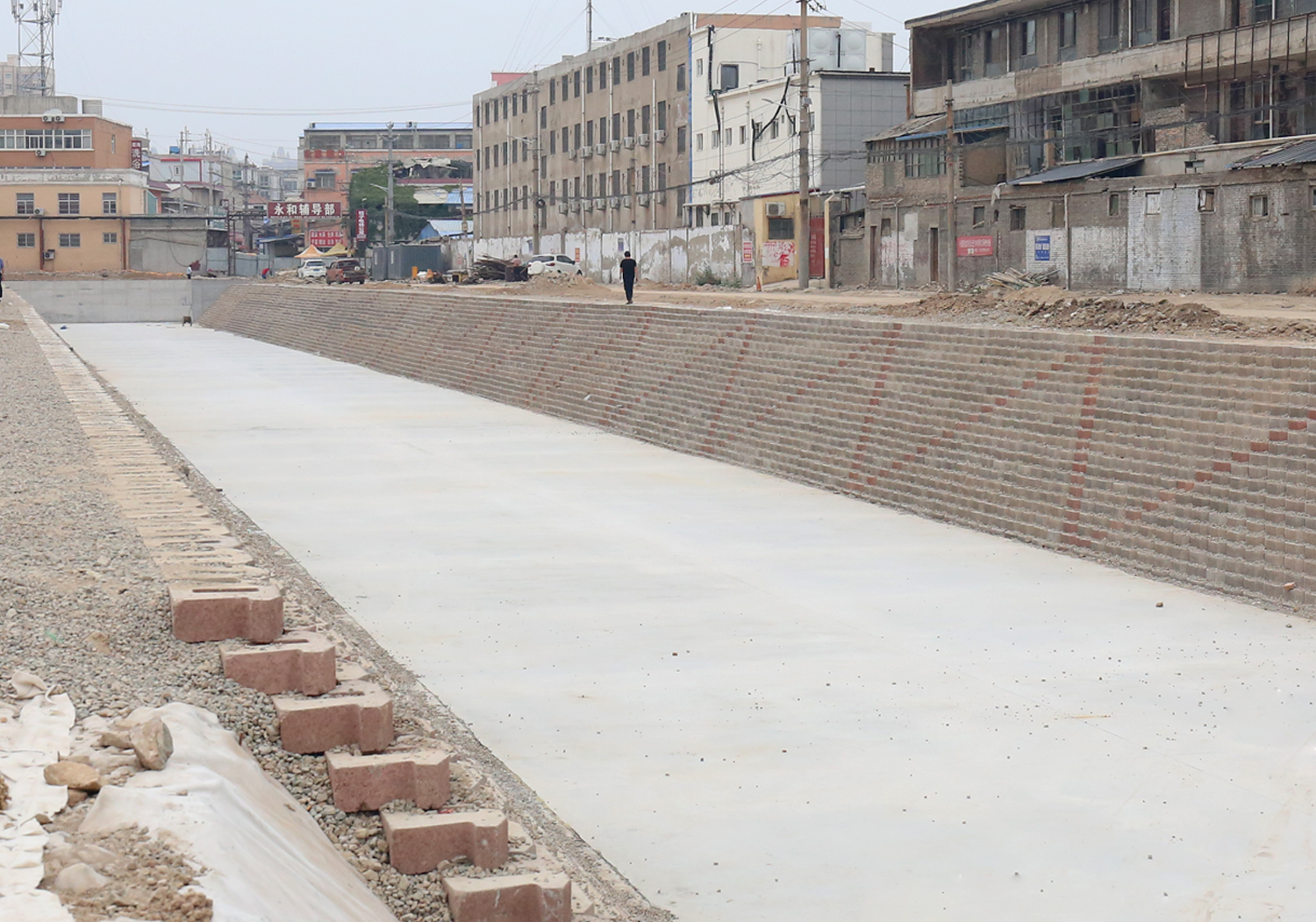 此次改造基于渠道原址,項目北起涑水街,南至火車站站北調(diào)節(jié)池西側(cè)提水泵站,全長4.26公里,批復主要建設內(nèi)容為:1、明渠段治理2.06千米;2、暗涵段清淤1.84千米;3、站北調(diào)節(jié)池出口段治理0.362千米;4、東留調(diào)節(jié)池及站北調(diào)節(jié)池治理;5、綠化2.6萬平方米;6、埋設排污管道11.63千米;7、中水回用工程及生態(tài)補水工程等。