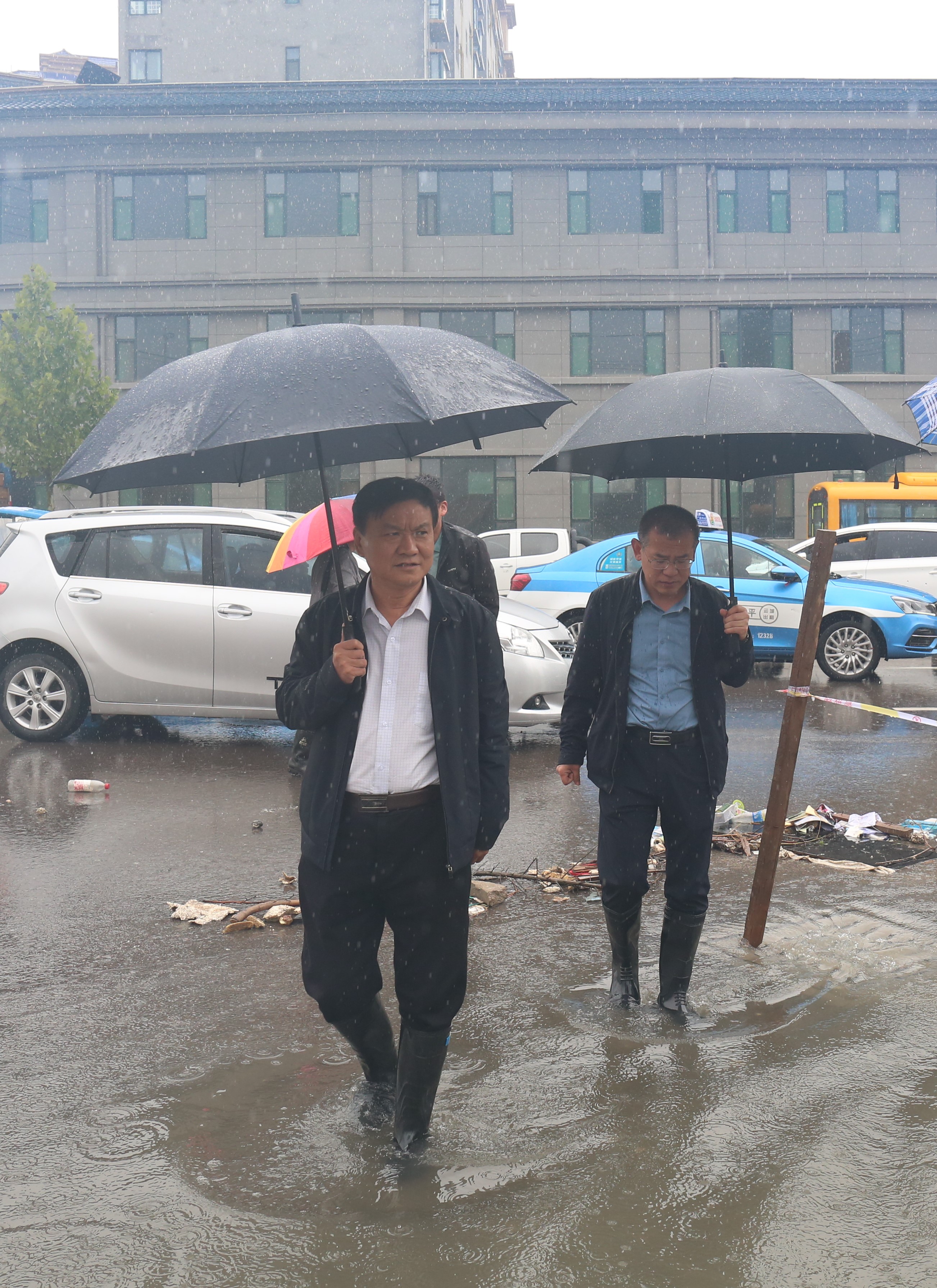 在工程現(xiàn)場,崔作銘詳細詢問工程度汛及排水情況,聽取了干河綜合治理工程項目負責人、各施工標段項目經(jīng)理及鴨子池項目負責人關(guān)于排水防澇等工作情況的匯報,并就下一步的防汛安全、排水調(diào)度、工程施工等工作進行了全面安排部署。