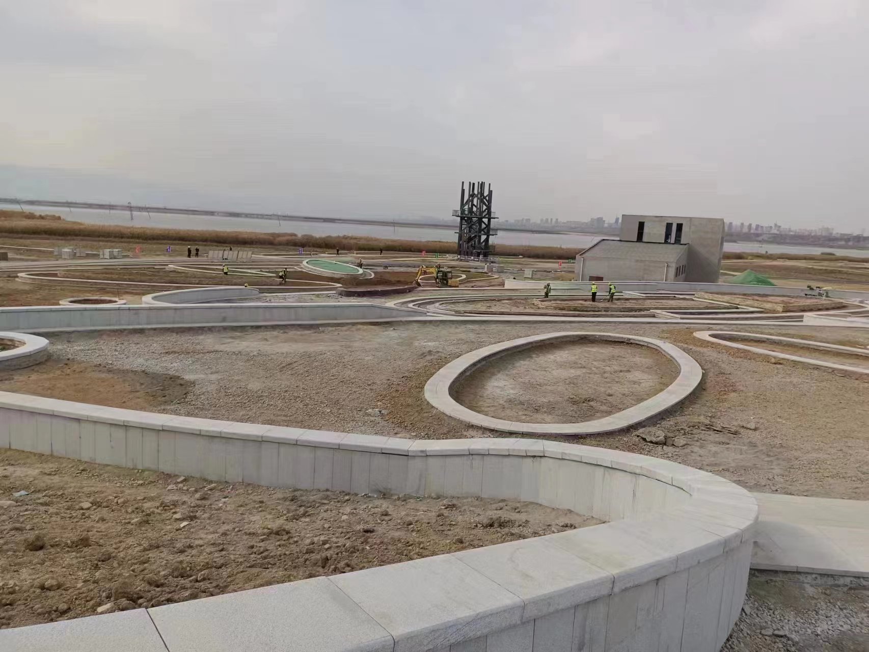 鴨子池水生態(tài)綜合提升工程重大項(xiàng)目不斷刷新建設(shè)新“進(jìn)度”,以實(shí)際行動(dòng)踐行水投責(zé)任。主廣場1臺(tái)至4臺(tái)花池完成貼文化石;停車場水泥磚鋪裝完成。沙灘基礎(chǔ)平整完成,巡湖塔鋼結(jié)構(gòu)主體吊裝完成。