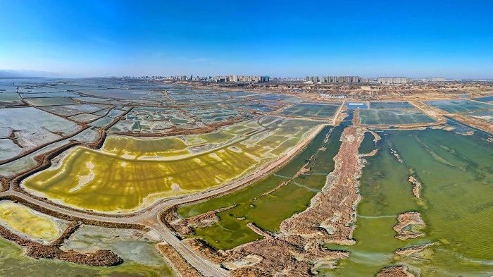 ▲鹽湖冬日獨特的地質(zhì)風貌,色彩斑斕生態(tài)宜人