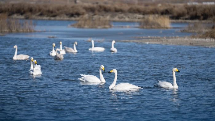 ▲美麗的大天鵝為冬日的鹽湖帶來了無限生機