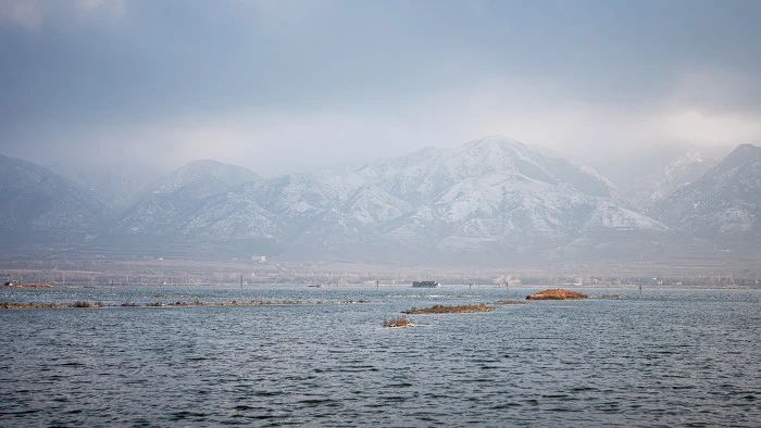 ▲運城鹽湖位于中條山腳下