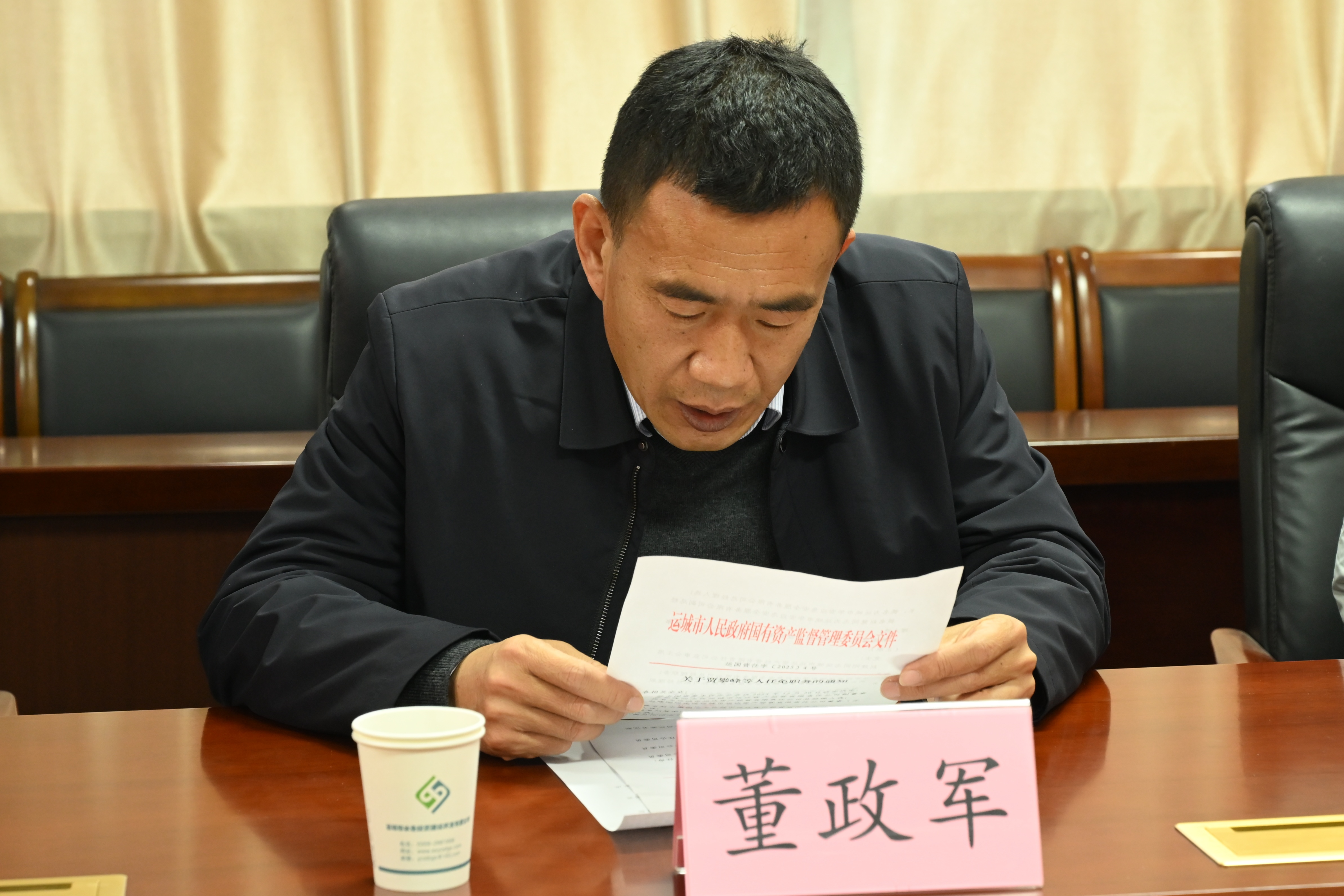 董政軍宣讀了郭龍同志任外部董事的通知。