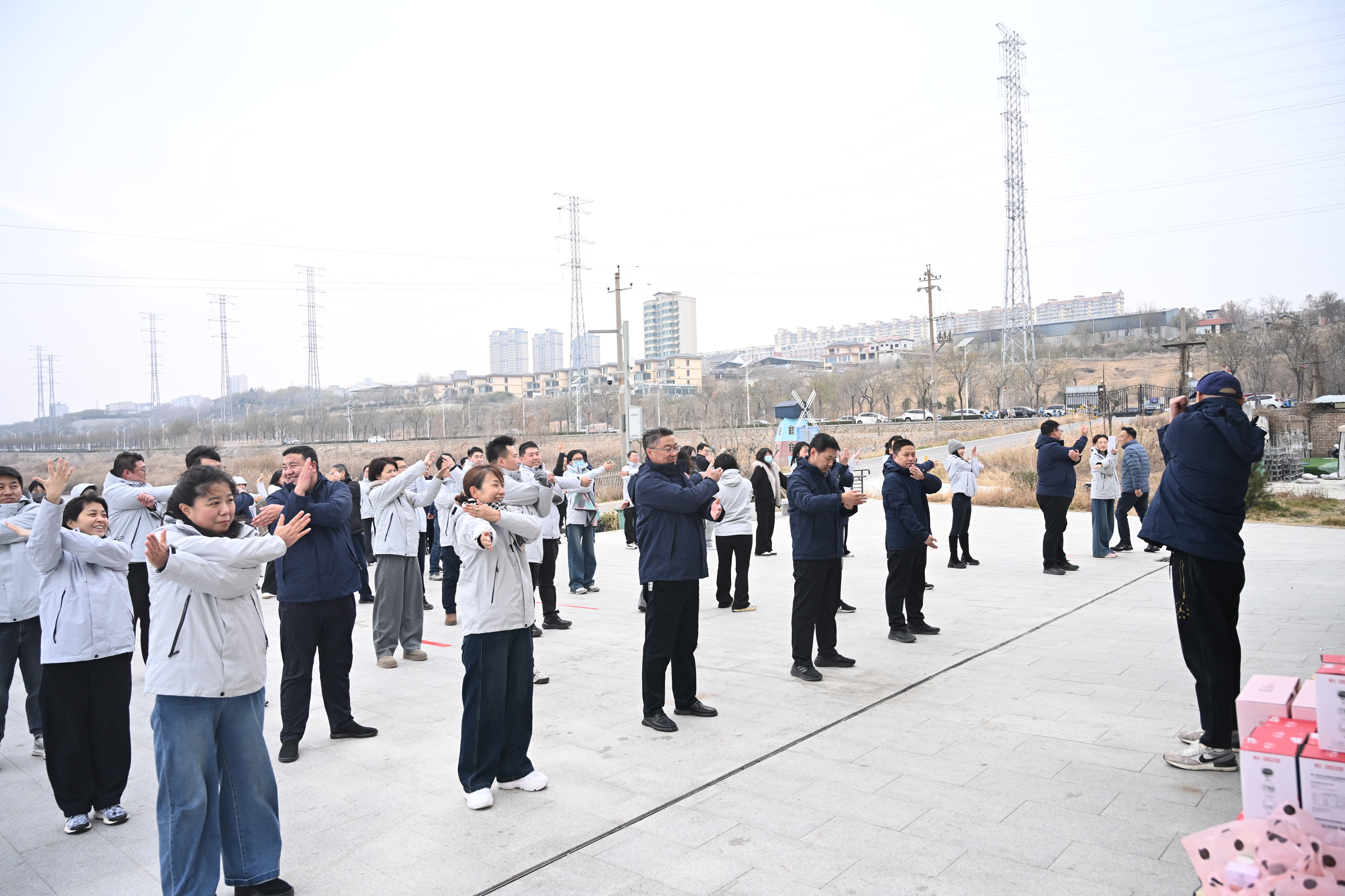 活動(dòng)伊始,在專業(yè)教練的帶領(lǐng)下,全體干部職工化身為“活力精靈”,迅速從辦公室的“久坐模式”切換至“運(yùn)動(dòng)模式”。伸臂、扭胯、拉伸……每一個(gè)動(dòng)作都洋溢著力量與喜悅,現(xiàn)場(chǎng)瞬間匯成一片沸騰的海洋,能量滿格,熱情迸發(fā)!