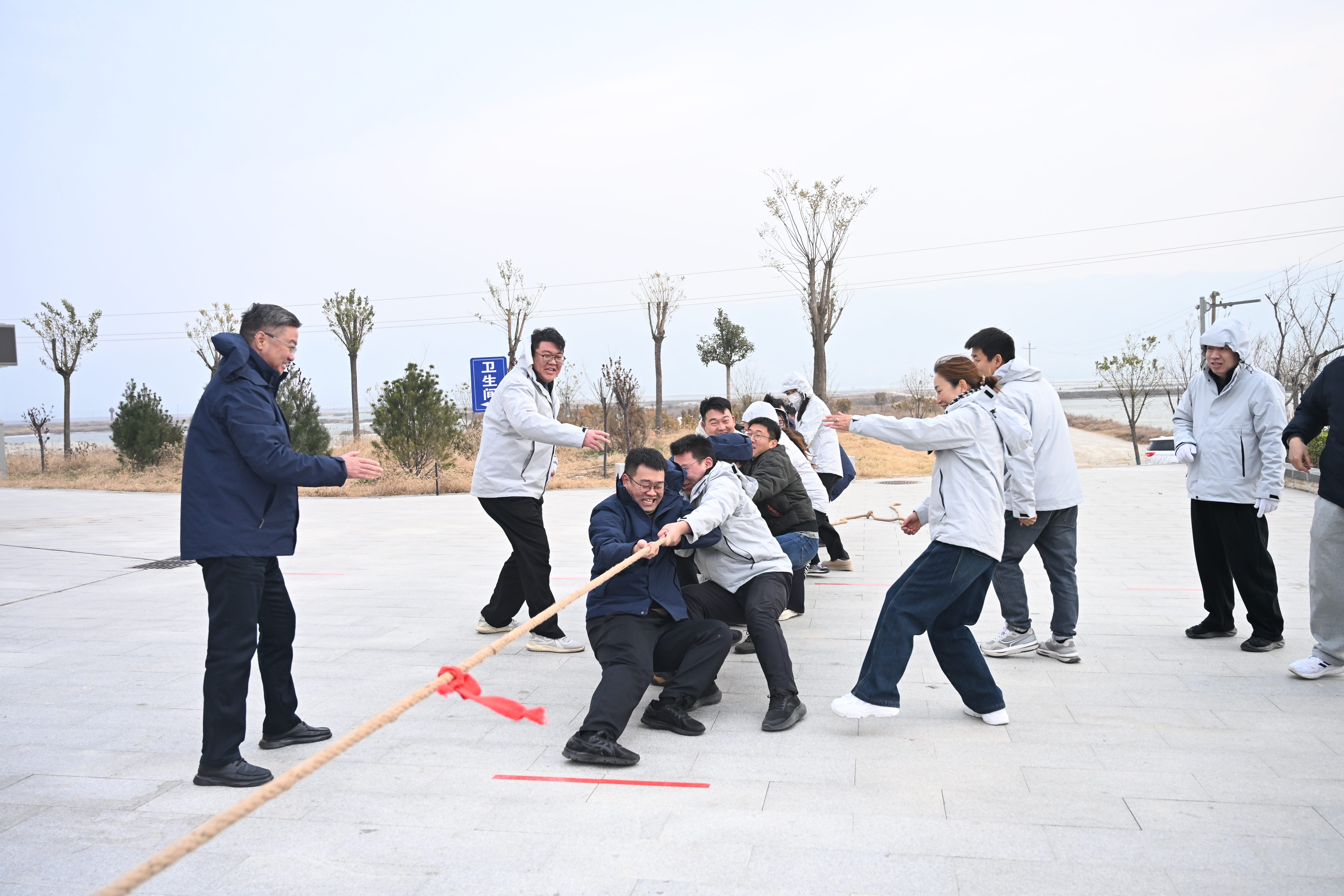 本次運(yùn)動(dòng)會(huì)設(shè)有“氣球轉(zhuǎn)運(yùn)”“團(tuán)隊(duì)拔河”“小火車觀光”三個(gè)特色項(xiàng)目,全體干部員工分為四個(gè)小隊(duì)展開角逐。盡管寒風(fēng)凜冽,但活動(dòng)現(xiàn)場(chǎng)始終暖意融融、氣氛熱烈。“氣球轉(zhuǎn)運(yùn)”環(huán)節(jié),各組隊(duì)員背靠背、肩并肩,默契配合傳遞氣球,歡聲笑語間盡顯協(xié)作智慧;拔河賽場(chǎng)上,各組選手緊握長(zhǎng)繩、穩(wěn)扎腳步,“一二、加油!”的吶喊聲震徹全場(chǎng),一股繩、一條心,生動(dòng)詮釋了團(tuán)結(jié)拼搏的強(qiáng)大力量;“小火車觀光”環(huán)節(jié)別具一格,職工們沿途欣賞冬日鹽湖靜謐美景,投喂天鵝、漫步棧道,在輕松愜意的氛圍中交流工作、暢談生活,進(jìn)一步增進(jìn)了同事情誼,讓休閑時(shí)光充滿溫度與意義。