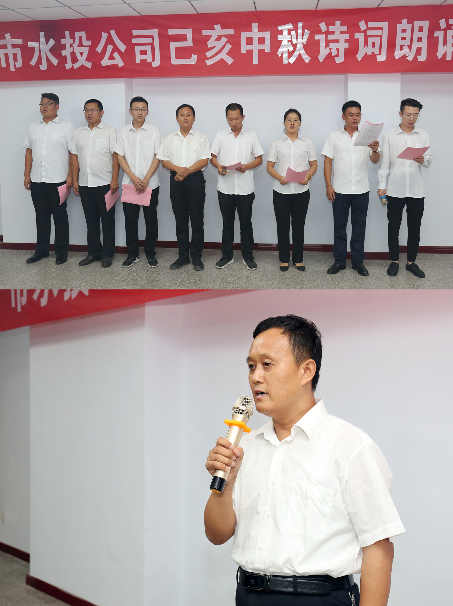朗誦會開始前,公司黨委書記、董事長兼總經(jīng)理崔作銘致辭,向為水投建設(shè)發(fā)展辛勤耕耘默默奉獻的全體員工致以誠摯的問候和衷心的感謝,同時預(yù)祝各位員工中秋佳節(jié)快樂家庭幸福、身體健康。他希望全體員工“守初心、擔(dān)使命,找差距、抓落實”,以“長風(fēng)破浪會有時,直掛云帆濟滄海”的豪情,以“千淘萬漉雖辛苦,吹盡狂沙始到金”的毅力,以抓鐵留痕,踏石留印的執(zhí)行精神,再寫傳奇,再譜新篇!