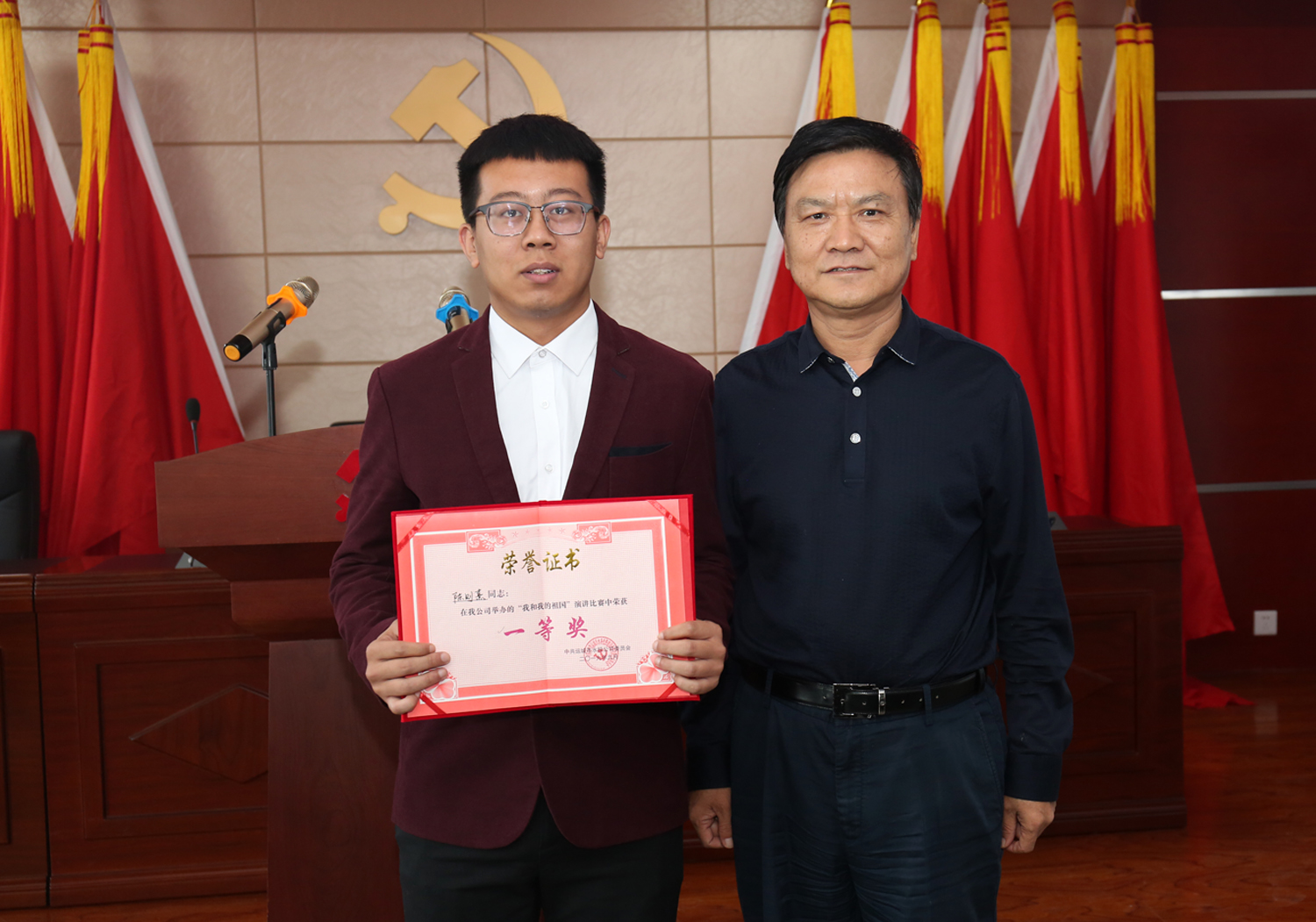 來(lái)自公司及各下屬單位的六名選手,圍繞“我和我的祖國(guó)”這一鮮明主題,用飽滿熱情的態(tài)度、富有激情的聲音,為大家呈現(xiàn)了一場(chǎng)精妙絕倫的視聽(tīng)盛宴。選手們從愛(ài)崗敬業(yè)、增強(qiáng)自信、放飛夢(mèng)想等方面謳歌贊美我們偉大的祖國(guó),各有側(cè)重、立場(chǎng)獨(dú)到,妙語(yǔ)連珠、聲情并茂、繪聲繪色的演講風(fēng)格,不僅表明了水投人對(duì)工作的熱忱,更表達(dá)了對(duì)祖國(guó)母親的深情與感恩,現(xiàn)場(chǎng)的熱情被歡樂(lè)和榮耀一次次點(diǎn)燃。本次演講比賽采取評(píng)委現(xiàn)場(chǎng)打分、現(xiàn)場(chǎng)宣布結(jié)果的形式,按照演講內(nèi)容、演講技巧、演講效果等進(jìn)行綜合評(píng)分。經(jīng)過(guò)激烈的角逐,最終評(píng)出一等獎(jiǎng)一名,二等獎(jiǎng)兩名,優(yōu)秀獎(jiǎng)三名,公司領(lǐng)導(dǎo)班子成員向選手們頒發(fā)了獲獎(jiǎng)證書(shū)。
