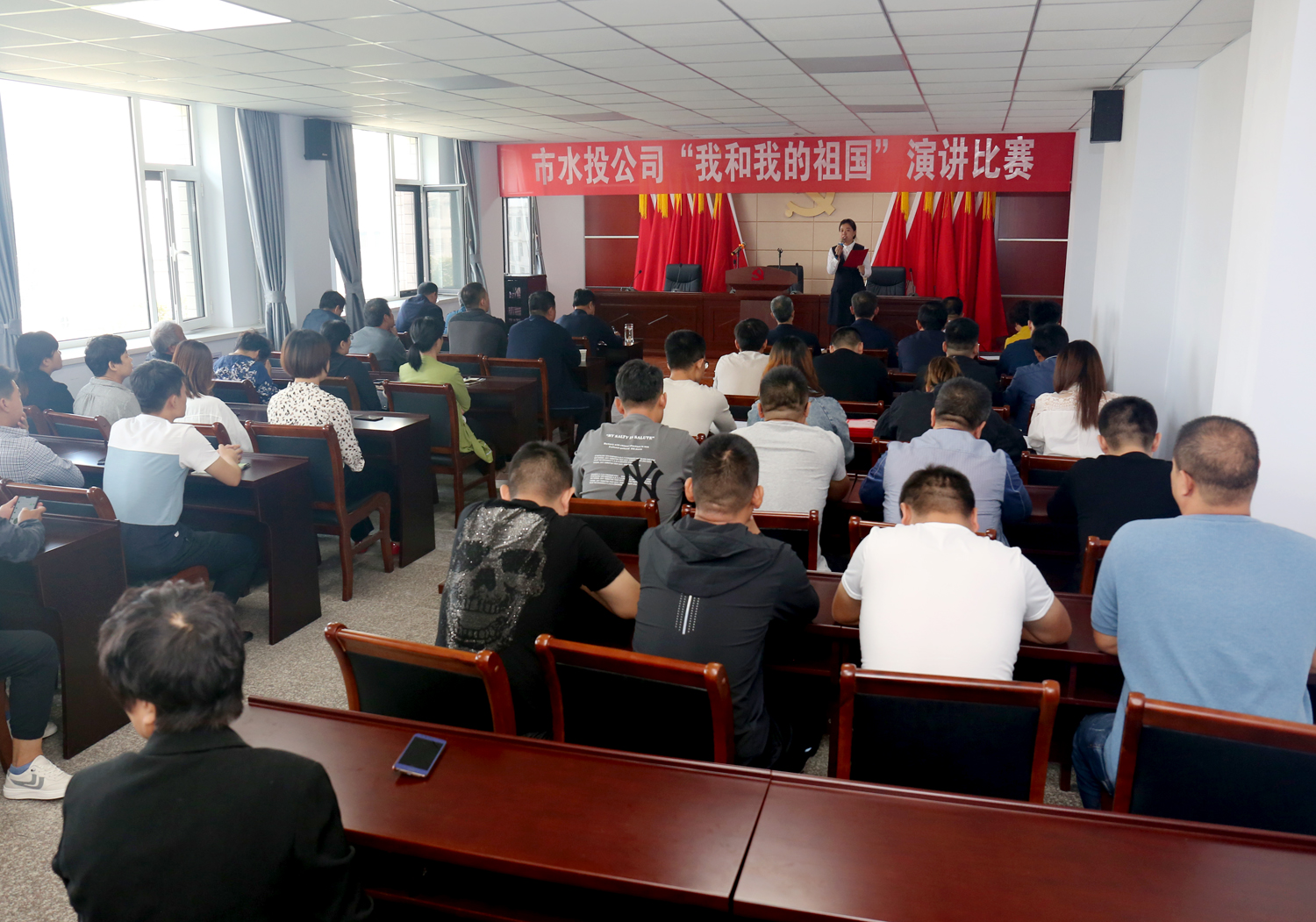 為了熱烈慶祝中華人民共和國(guó)成立70周年,扎實(shí)開(kāi)展“不忘初心、牢記使命”主題教育活動(dòng),9月23日上午,市水投公司在六樓會(huì)議室舉辦“我和我的祖國(guó)”演講比賽活動(dòng)。市水投公司及各下屬單位優(yōu)秀代表參加了比賽,公司領(lǐng)導(dǎo)班子成員及各下屬單位班子成員觀看了比賽。