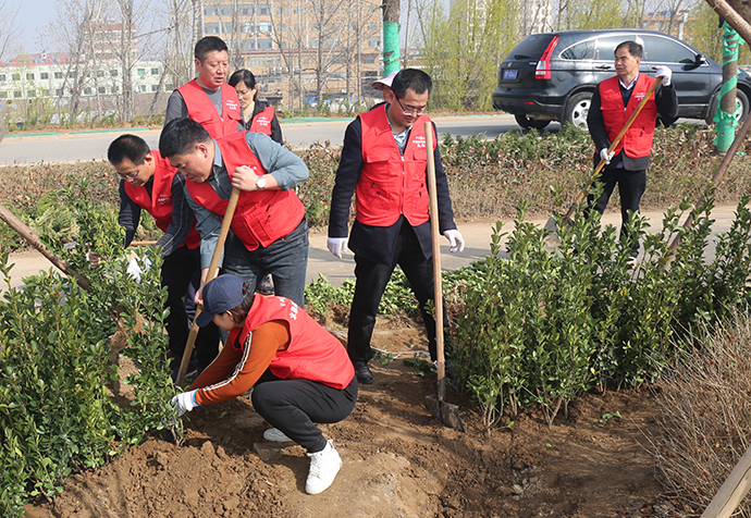 植樹現(xiàn)場,公司志愿服務(wù)隊揮鍬培土、提水澆苗,一派繁忙的勞動景象,大家相繼栽下大葉黃楊地苗5000余株,為山西稷山汾河國家濕地公園的春天增添了一片生機。