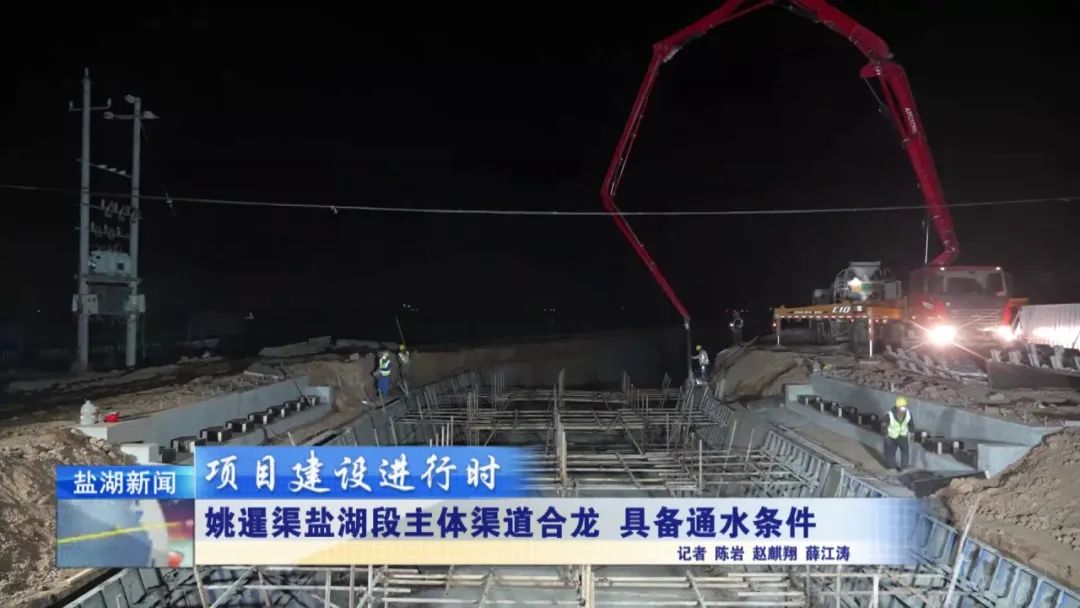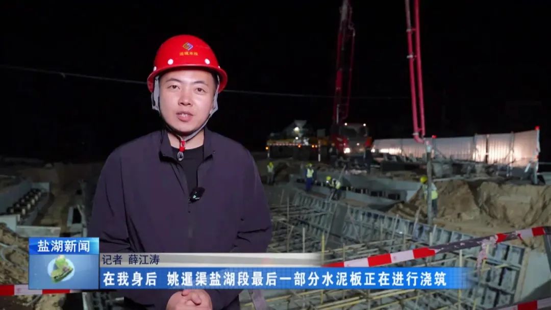 現(xiàn)在是4月28日晚上11時30分,在我身后,姚暹渠鹽湖段最后一部分水泥板正在進行澆筑。澆筑完成后,全長24.9公里的姚暹渠鹽湖段主體渠道將實現(xiàn)合龍,形成完整的過水通道,標志著工程迎來關(guān)鍵的階段性勝利。